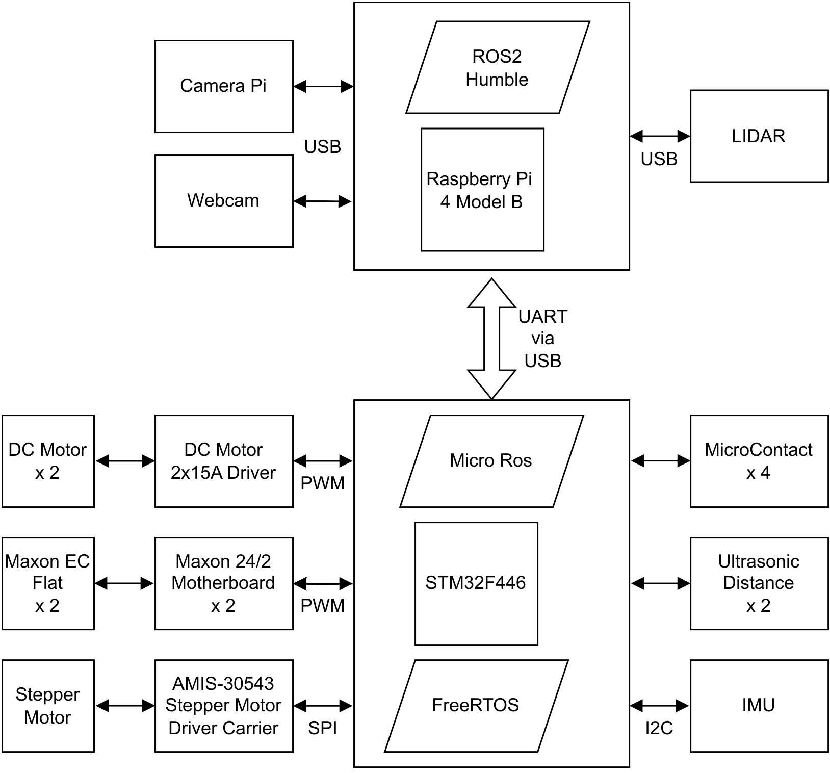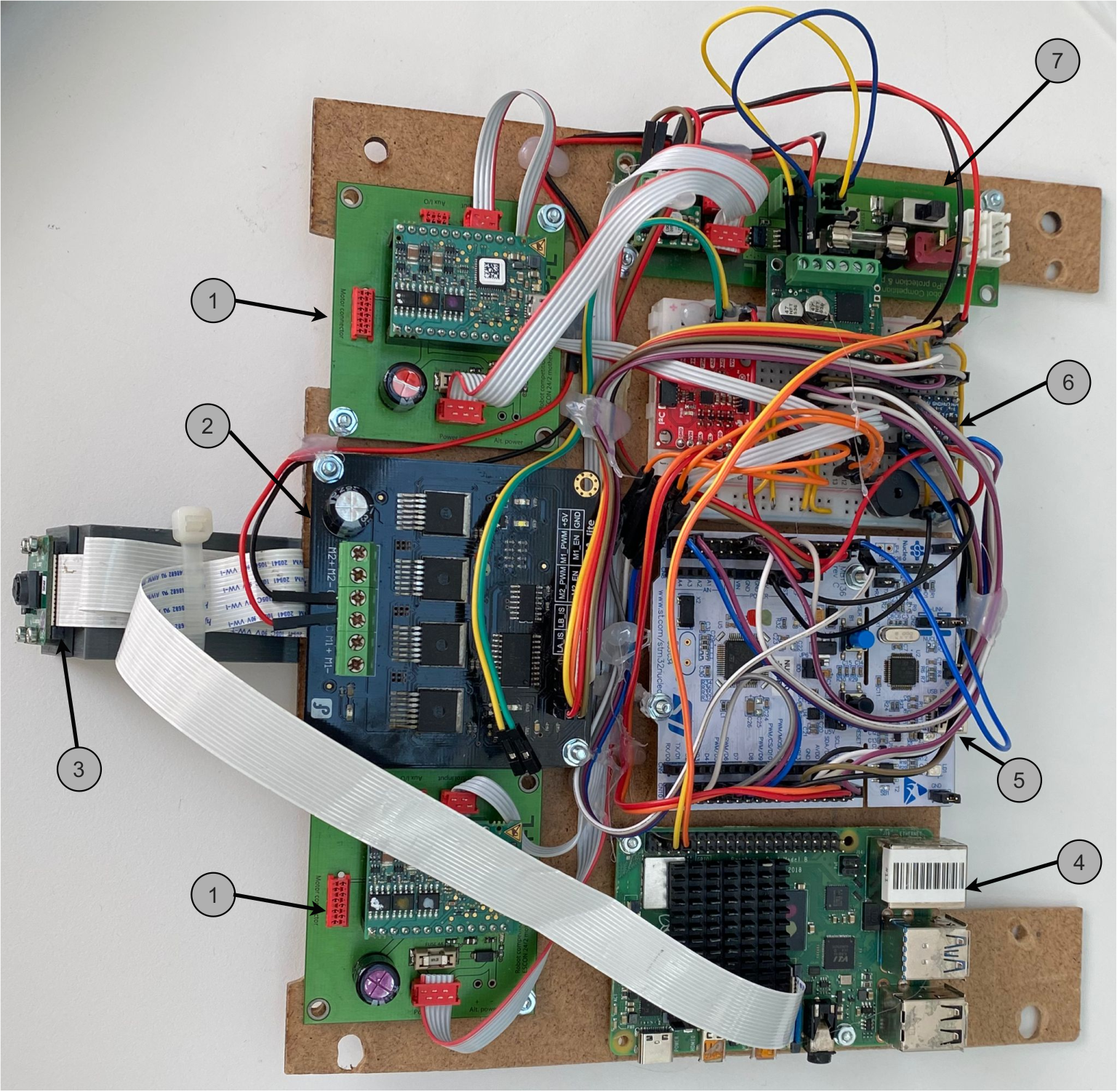 A Raspberry Pi 4 Model B is used for more resource intensive task (e.g. computer vision).