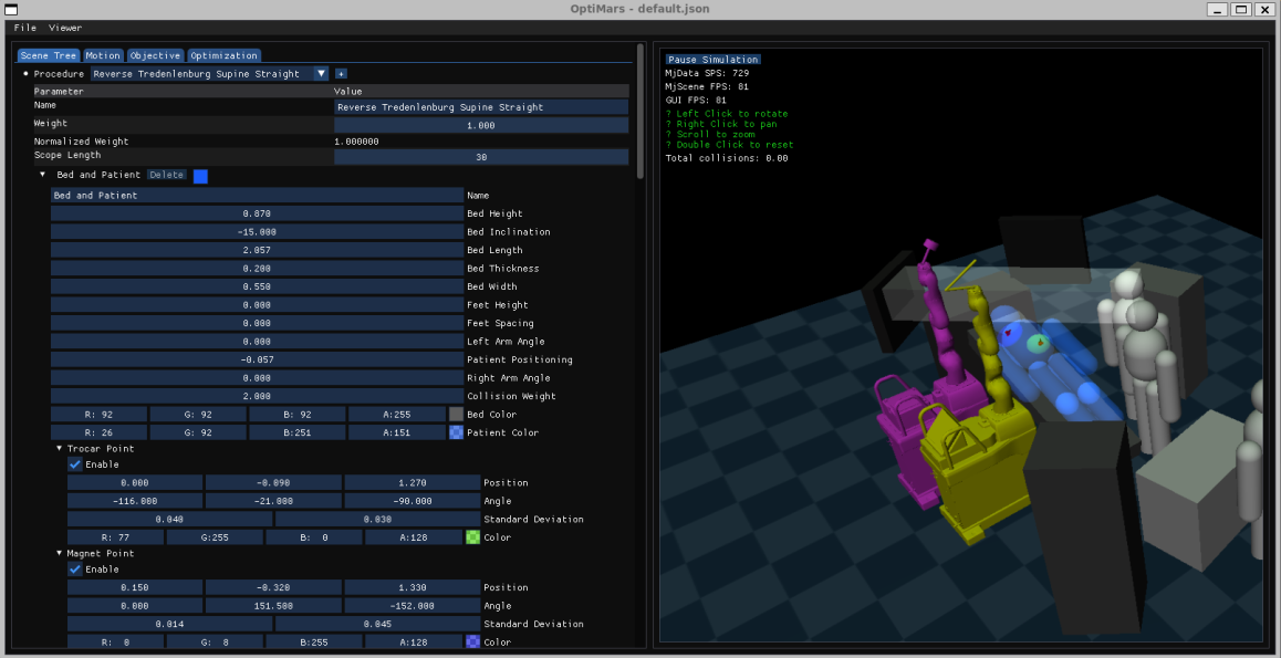 The MARS surgical system enhances minimally invasive procedures through magnetic fields and robotic automation. The system’s surgical effectiveness is directly tied to the robot kinematics behavior. For this reason, this research refines the target controller to improve positional consistency, a solution already tested and awaiting deployment. Additionally, OptiMARS, a Monte Carlo-based simulator, was developed to optimize kinematic parameters such as cart placement and tool dimensions. This simulator incorporates patient-specific variations (e.g. BMI, incision location) and replicates the real systemβs motion controller behavior, enabling relevant kinematic optimization. Initial optimization efforts have yielded a set of optimized cart placement positions that can be used during a new alignment procedure. The work delivers immediate improvements while establishing a scalable framework for future enhancements, ensuring the MARS system can evolve alongside clinical advancements.